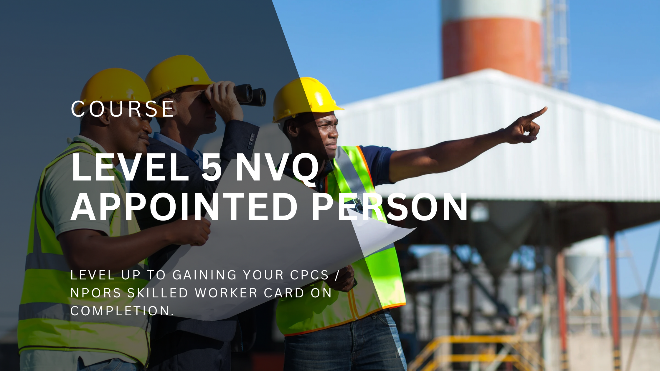 Our Level 5 appointed person NVQ will be the correct pathway to level up to gaining your CPCS / NPORS skilled worker card on completion.